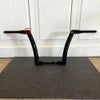 モンスター ハンドルバーです。 幅広のハンドルバーです。 クランプ取り付け部分および、ハンドコントロール部分は1インチ径となっております。 電子制御スロットル対応の切欠きと、ワイヤーハーネスを通すための穴が開いています。 ※ワイヤーハーネス用のディンプル(窪み)はついておりません。 ※ケーブルスロットル用に使用する際は、ハンドルバープラグ(0634-0331)を使用し、切りかきを塞いでください。 ※バットウィングフェアリング装着車、および2015以降ロードグライドには取り付けできません。 赤枠箇所に傷があります。