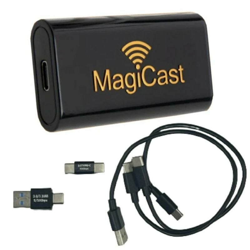 Sound Streamヘッドユニットの革新的なインターフェイスモジュールです。 従来のBluetoothオーディオに加えて、有線でしか使用できなかったApple CarPlayやAndroid Autoをワイヤレスで利用可能にします。 ・MagiCastを使用すれば、USBケーブルが不要になります! 一度ペアリングすれば、イグニッションをONにするだけでiPhoneやAndroidが自動的に接続されるので、Apple CarPlayやAndroid Autoを快適にご利用いただけます。 ・セットアップは簡単!USBコネクターに接続してBluetooth設定を進めるだけのカンタン設定です。 ・Sound Streamヘッドユニットとの組み合わせで最新のテクノロジーを活用し、ワイヤレス接続による便利さと快適さでツーリング体験をより充実させることができます。 【付属品】 MagiCastモジュール 本体×1 USB Type-Cアダプター ケーブル×1 コネクタ×1 USB Type-Aアダプター ケーブル×1 コネクタ×1 展示処分品