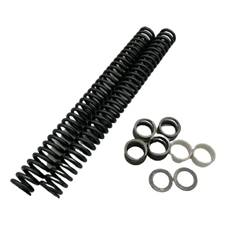 車体をローダウンさせる場合、リアだけローダウンする人が多いですが、本来フロントとリアと合わせてローダウンする方が全体のバランス的に好ましいです。 このキットを使用すると、ノーマルサスペンションより1~ 2インチ(約2.5~5cm)フロントが下がります。 Progressive / Burly独自の2つのスプリングを用いた方式でローダウンを実現します。 キレイな状態です。 写真1枚目は実商品です。 程度:★★★★☆