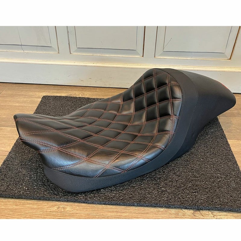 BMCモーターサイクルとコルビンのコラボレーションによって開発されたシート。 高く垂直に立ち上がるバックサポートデザインが特徴です。 このバックサポートによって、よりアグレッシブなライディングが可能になります。 もともとはウィリーなどスタント用のデザインですが、強烈な加速の際にもライダーをしっかりとホールドしてくれます。 高密度のコルビン独自のシートフォームは適度な硬さがあり、長時間乗っても荷重ポイントが変わりません。 コルビンのために独自に開発した、ハイブリッド素材製のリジッドシートベースが、シートフォームの型崩れを防止し、長時間乗っても体へかかる荷重が変化しません。 ※2017以降純正クールフローファンとミッドフレームヒートデフレクターをセットで装着の車両は、ヒートデフレクターとシートが干渉します。 キレイな状態です。 写真は実商品です。 程度:★★★★☆