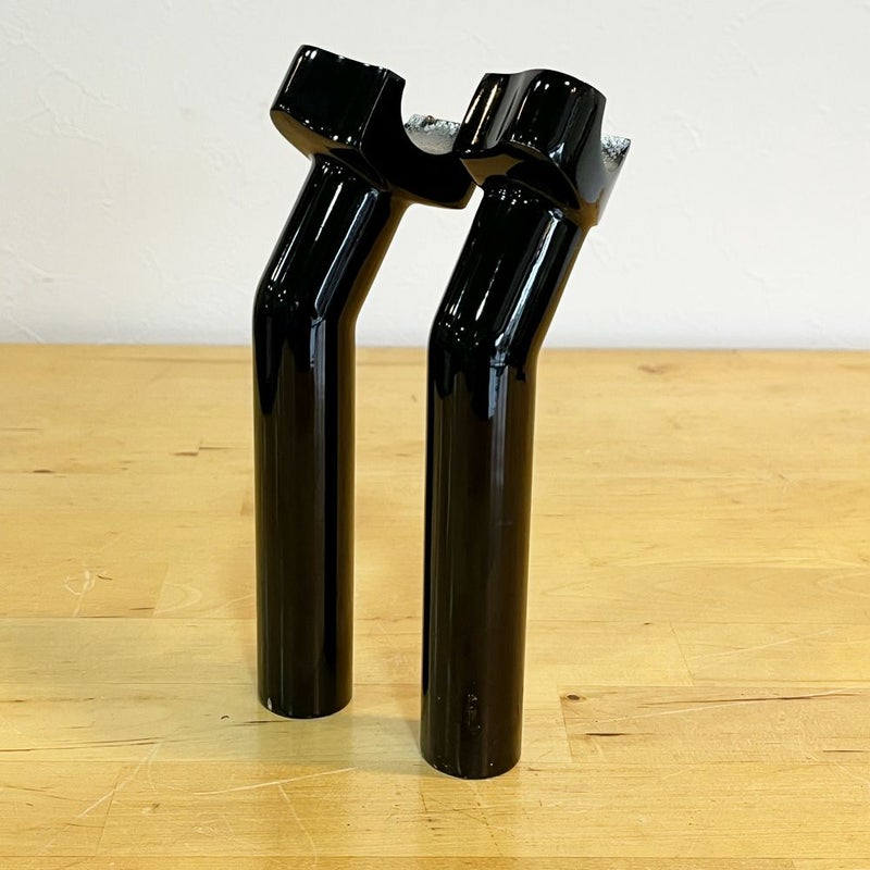 長さ6.5インチ(約16.5cm)とやや長めのプルバックライザー。 ハンドルを少し手前に移動し楽なポジションにします。 ※ブレーキホース、クラッチケーブルの交換が必要になる場合があります。 小傷はありますが、目立つキズ等ありません。 写真は実商品です。(写真3枚目は取り付けイメージです。) 程度:★★★☆☆
