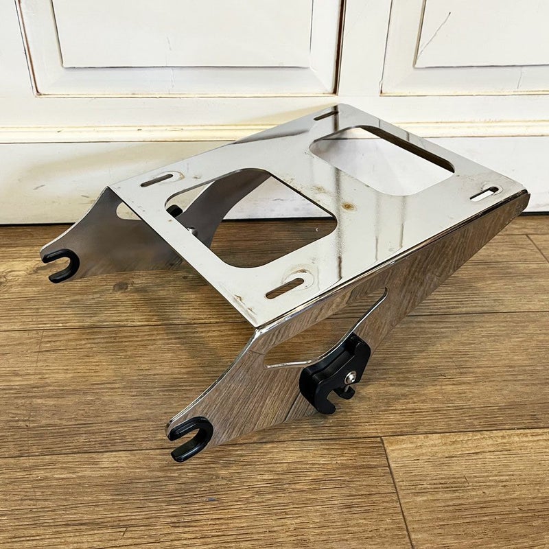 各種ツアーパックラゲッジシステムを簡単に着脱できる便利なアイテム。 ラックはシンプルなターンラッチでドッキングポイントに固定します。 取り付け位置は最大19mmの範囲で調整可能。 パッセンジャーに最適なバックサポートの位置にセッティングすることができます。 ツアーパックはデタッチャブル・シーシーバーアップライトと交換も容易です。クローム仕上げ。 ※ドッキングハードウェアキット(別売)52300353が必要です。 小傷、サビがあります。 写真は実商品です。 程度:★★★☆☆