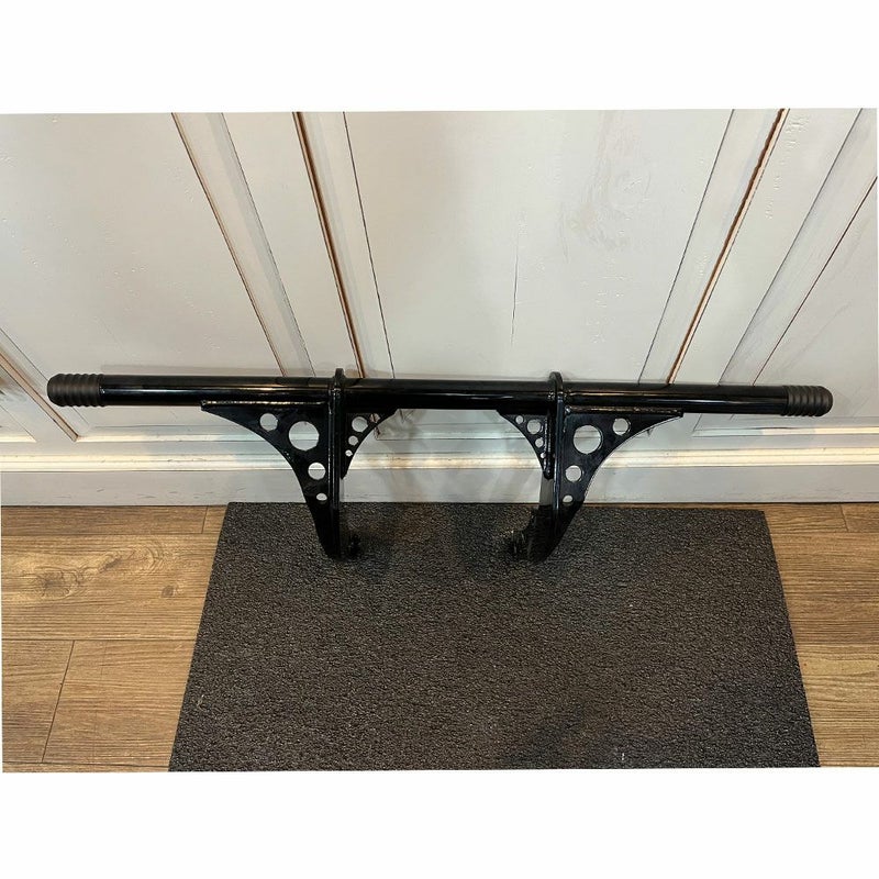 ローカルスタントライダーがウィリーなどを練習する際、転倒してもできるだけバイクにダメージを与えないためにデザイン・設計された、エンジンガードとハイウェイペグ2つの機能を持つクラッシュバーです。 シンプルな形状ですが、バイクを倒してしまった際などにしっかりと車体を守ってくれます。 バーの先端は交換可能なので、万が一転倒して傷が付いてしまった場合でも新しくすることができます。 丹念な開発と実験を繰り返して最適な取り付け位置とバーの長さが設定されていますので、ハイスピードコーナリング時の十分なリーンアングルを確保しつつ、転倒時は十分な保護効果を発揮します。 ※リブデザインのスライダー付 ストリートボブ:FXBB、FXBBS スタンダード:FXST ローライダー:FXLR ローライダーS:FXLRS ローライダーST:FXLRST キレイな状態です。 写真は実商品です。(写真4枚目は取り付けイメージです。) 程度:★★★★☆