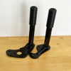 標準サドルバック装着車(FLHCS、FLSB、FXLRST等)のクラッシュバーとしてしっかりガードしてくれます。 ローカルスタントライダーがウィリーなどを練習する際、転倒してもできるだけバイクにダメージを与えないためにデザイン・設計された、パッセンジャーペグとしての役割も持つクラッシュバーです。 シンプルな形状ですが、バイクを倒してしまった際などにしっかりと車体を守ってくれます。 ステップ先端部分は大きな凹凸がついた滑り止め形状で、長期使用後もひび割れしずらく、綺麗な状態を保てます。 また、交換可能なので万が一転倒して傷が付いてしまった場合でも新しくすることができます。 取付はノーマルのパッセンジャーペグと同じ取付位置に取り付けます。 ※ヒートシールドとのクリアランス確保のため、マフラーブラケットを外し、クラッシュバーマウントを装着したうえで、上からマフラーブラケットを装着し直してください。この際、エキゾーストクランプボルトも一度緩めて位置調整する必要があります。 幅はノーマルのパッセンジャーペグとほぼ同じで、高さは若干高くなります。 同メーカーのフロントクラッシュバーと併用することで、より一層車体を守れます。 左右セット 小傷等はありますが、目立つ傷はありません。 写真は実商品です。 程度:★★★☆☆