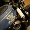 ハーレー RHモデル(スポーツスターS、ナイトスター、パンアメリカ)にインチ用グリップを装着するためのグリップチューブセットです。 <特長> ●RHモデルの22mm径ハンドルエンドに装着することで、1インチ径ハンドル用のグリップ各種を装着可能 ●チョッパー、ボバー、フリスコ等のカスタムに似合うグリップを幅広く選択可能になります ●アルミニウム製の精緻な削り出し加工品。ブラックカラーのアルマイト仕上げ NMC パンチンググリップが付属します。 グリップに使用感があります。 写真は実商品です。(写真3枚目は取り付けイメージです。) 程度:★★★☆☆