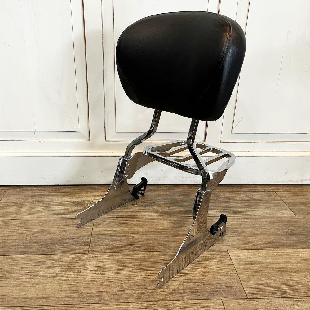 ハーレー ツインカムソフテイルの200mmリアタイヤモデル(ファットボーイ、スタンダード、ナイトトレイン、カスタム、スプリンガー)用、デタッチャブルシーシーバーです。 サイドプレート(53810-00C)、アップライト(51477-06)、バックレスト(51640-06)、ラック(53896-06)のお得なセットです。 相当お得です。 デタッチャブルなので、必要に応じて簡単に取付け/外しできます。 バックレスト付きなので、パッセンジャーも快適です。 ※車種によりターンシグナルの移設が必要です。 ※別売ドッキングハードウェアキットが必要です。 目立つキズ等ありません。 写真は実商品です。 程度:★★★☆☆