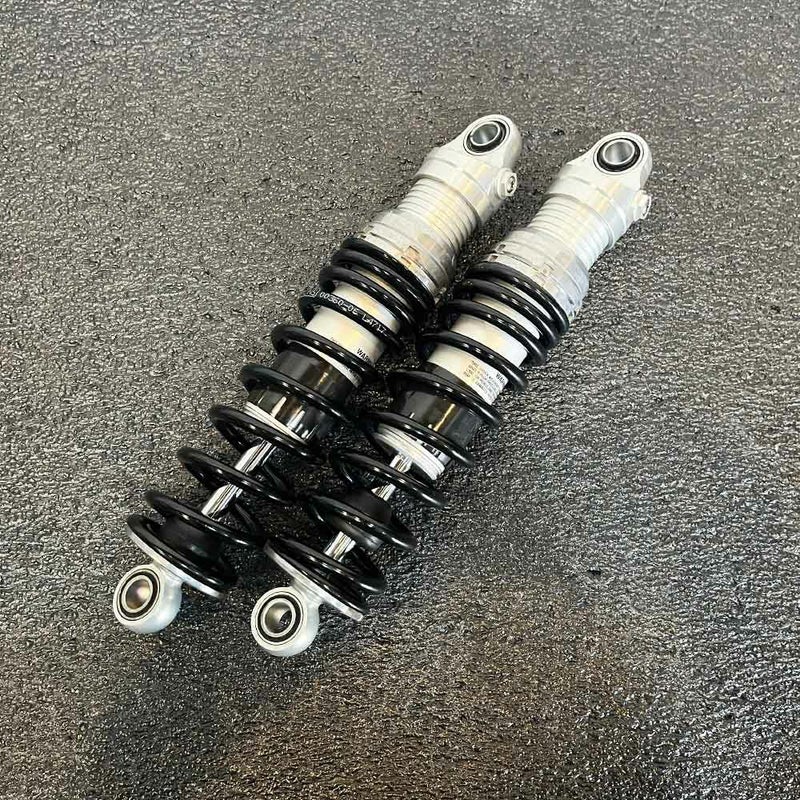 高い部品加工精度と、入念な研磨工程を経た可動パーツによって、高性能サスペンションとして評価の高い、オーリンズの最もベーシックなモデルです。 シルバーのアルミボディと、ブラックスプリングの精悍なスタイルで、どのようなモデルにもマッチする配色です。 本体はオイル封入式のモノチューブ構造で、シンプルなモデルですが、マルチレートスプリングを使用し、オーリンズの特徴であるスムースに作動する高性能ショックアブソーバーとの組み合わせにより、路面からのショックを良く吸収し、乗り心地の良さと大きな入力に対する踏ん張りを両立しています。 FLHX、FLHXSの標準装着サスペンションよりも更に短い、11.6インチ(296mm)長。オーリンズのツーリングモデル用サスペンションでは最も短いタイプです。 プリロード調整アジャスター付。 左右ペア 弊社スタッフの車両に取り付けていたオーリンズです。 2024年6月にオーバーホール後、試走のみ シャフトも交換済。 上部に少し傷がありますが、相当、お得です。 写真は実商品です。 程度:★★★★☆