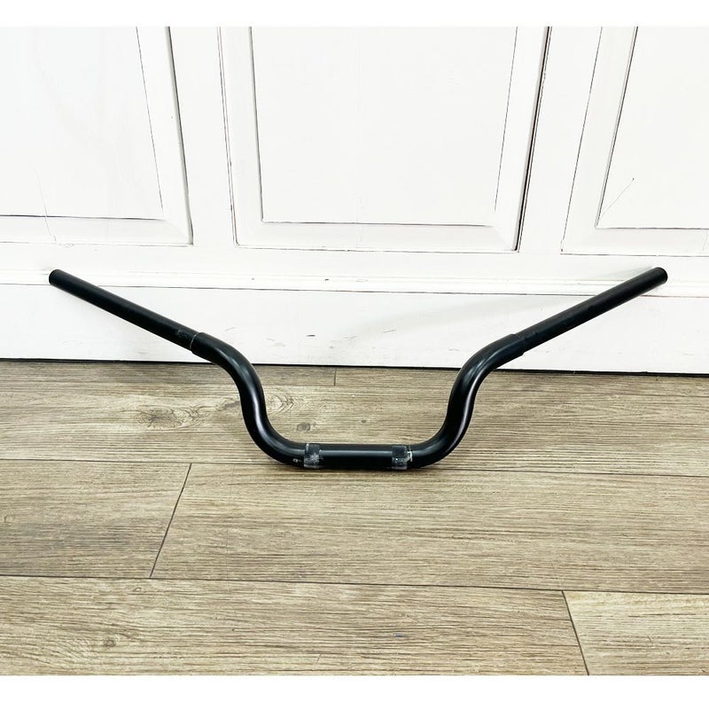 ナイトスター RH975用のハンドルバーです。 ノーマルハンドルよりも絞りをきつくし、ハンドポジションが手前に100mm来ますので、姿勢が楽になり乗りやすくなります。 スイッチボックス位置決め用の穴も開いています。 ノーマルのバーエンドミラーも装着出来ます。 サイズは保安基準の許容範囲内に収まるため、構造変更申請も不要です。 ノーマルのホース、ケーブル類もそのまま使用出来、コストパフォーマンスに優れた製品です。 ※取り回しの変更が必要となることがあります。 目立つキズ等ありません。 写真は実商品です。(写真3、4枚目は取り付けイメージです。) 程度:★★★☆☆