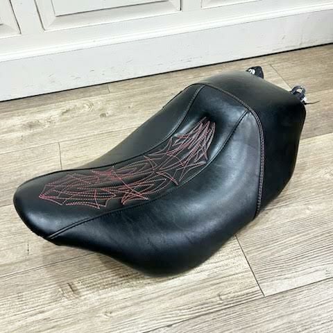 Le Pera BARE BONES アップフロント・ソロシート ラペラのベアボーンズシートはラペラで一番薄くてローポジションのシートです。低い着座位置はハーレーに似合います。 足付きも良くなります。 ですが、ポジションが少し後ろすぎるという場合はこのアップフロントシートにすると、薄さはそのまま着座位置が約6cm前方にきます。 ハンドルが近くならない方が良い方は通常のベアボーンズシート(LK-005)をお選び下さい。 このシートよりやや厚みがあり乗り心地も良いシルエットシートもあります。 後席ピリオンシートは LK-005P、LK-005PDX です。 小傷はありますが、目立つ傷はありません。 写真は実商品です。 程度:★★★☆☆