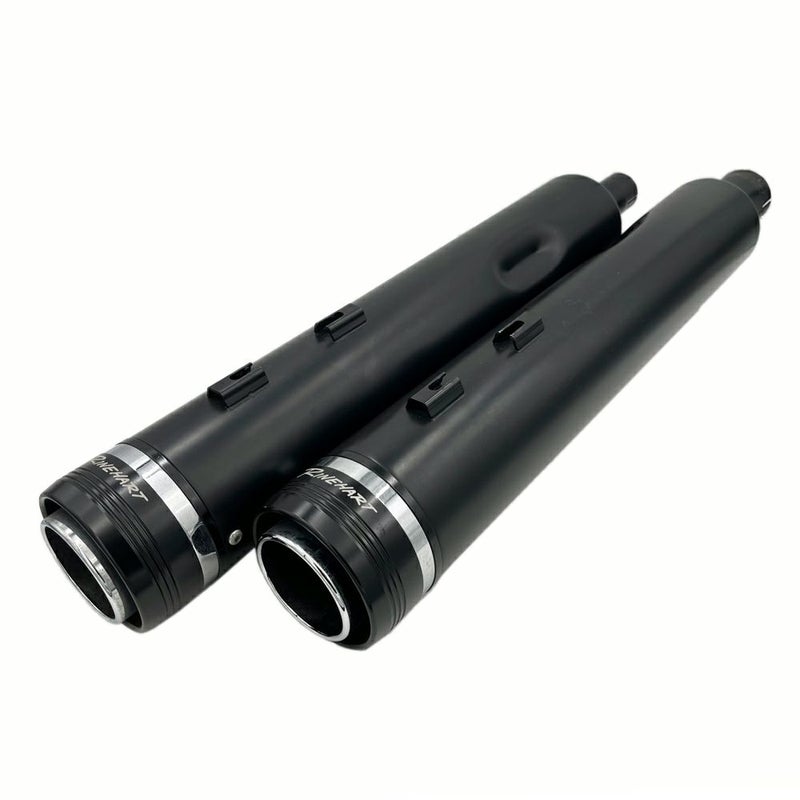重低音サウンドで定評があるラインハート社のスリップオンマフラー。 マフラーの口径は4.5インチ。 馬力とトルク、それぞれを最大限追求したマフラーです。 性能だけでなく、音も良く、弊社一押しのマフラーです。 後ろから見ても太くいて迫力がありますが、内部には独自の2-1/2 インチ径スパイラル・コア・バッフルが装着されており、重低音を奏でます。 ※2021~2023 ツーリングには別途ガスケット(右:65900056A 又は 029714、左:65900017A 又は 68-10199-1)が必要です。 左側エンド付近にガリ傷があります。 写真は実商品です。(写真4枚目は取り付けイメージです。) 程度:★★★☆☆