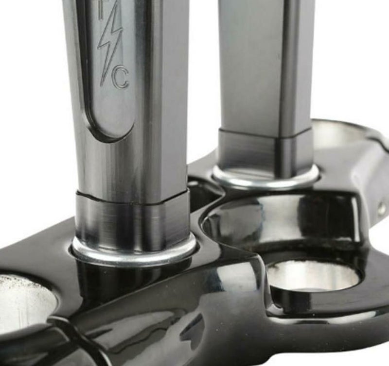 Thrashin Supply製のライザー専用。 ハンドルを1/2インチ(約1.3cm)上にアップします。 ライザーとトップブリッジの間に入れて固定します。 念の為、どの程度ケーブルやホースに余裕があるかチェックして下さい。 ハードウェア付属。