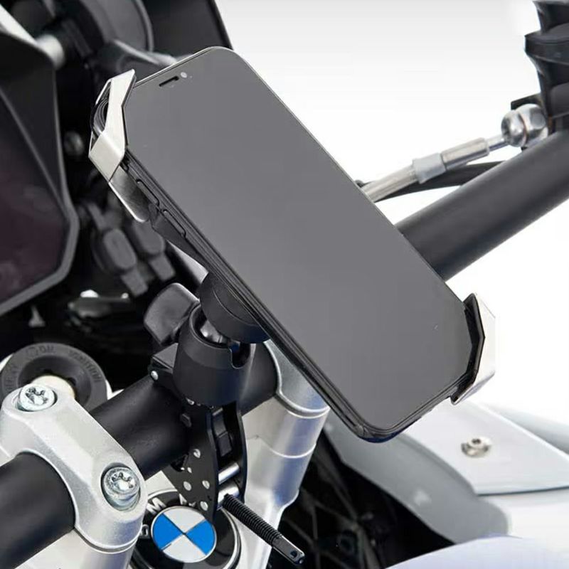 スマートホンを固定できるホルダーです。 バネで伸縮する2個のアームで対角線上の角をホールドする仕組みの、汎用性の高いホルダーです。 長さ135mm~180mm、厚さ11mmまでのスマートホンを装着出来ます。 ロック機構付きで、振動などによる不意な脱落を防止します。 スマートホンとの接触部分は絶縁性の振動吸収スポンジが付いています。 Wunderlich(ワンダーリッヒ)の別売マルチクランプ(W45155-002、W45155-302)に装着します。 取付け角度と縦・横置き調整可能。