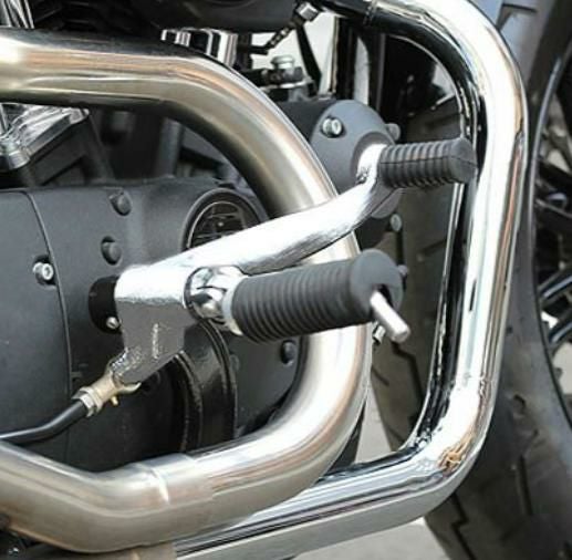 スポーツスター用ミッドコントロールキット。 フォワードコントロールのポジションについての悩み、純正ミッドコントロールポジションのスタイルでは満足出来ない方、スタイリッシュで快適なポジションをお届けいたします。 純正フォワードコントロールのポジションから、230mmバック 48mmアップ 純正ミッドコントロールのポジションから、20mmフォワード 50mmアップ 付属のブレーキアームにはシフトペグの装着が可能。左右お揃いのペグが使える! 激しいシフトチェンジにも耐えられるよう、シフトアームの素材にはステンレスを採用! メインとなるブラケットにはロストワックス製法(精密鋳造法)を採用し、高強度、高精度を満たしております(スチール)。 シフト及びブレーキアームのカラーはブラック・ポリッシュの選択が可能! (メインブラケット及びブレーキロッドはブラックのみ) KIT内容: ・メインブラケット左右・ブレーキアーム・シフトアーム・ブレーキロッド ・ステップホルダー(左側)・ブレーキ側用シフトペグ(1個)