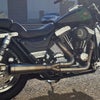 スポーツスター用 2-1フルエキゾーストマフラーです。 アサルトライフルをイメージしたスリムなマフラー形状で、スポーティーなルックスです。 エキゾーストパイプ集合部とマフラー連結部はクランプを必要としないダブルスリップ構造で、排気漏れを抑えながらすっきりとしたルックスです。 素材は16ゲージ厚(約1.2mm)の304ステンレススチール製。 付属の部分ヒートシールドはレーシングイメージのワイヤー止めファスナー仕様。 内蔵バッフルは主に中回転域のパワーを重視したセッティング。レーシーで深みのあるサウンドです。 ※車両装着写真はFXR用のものです。(参考写真)