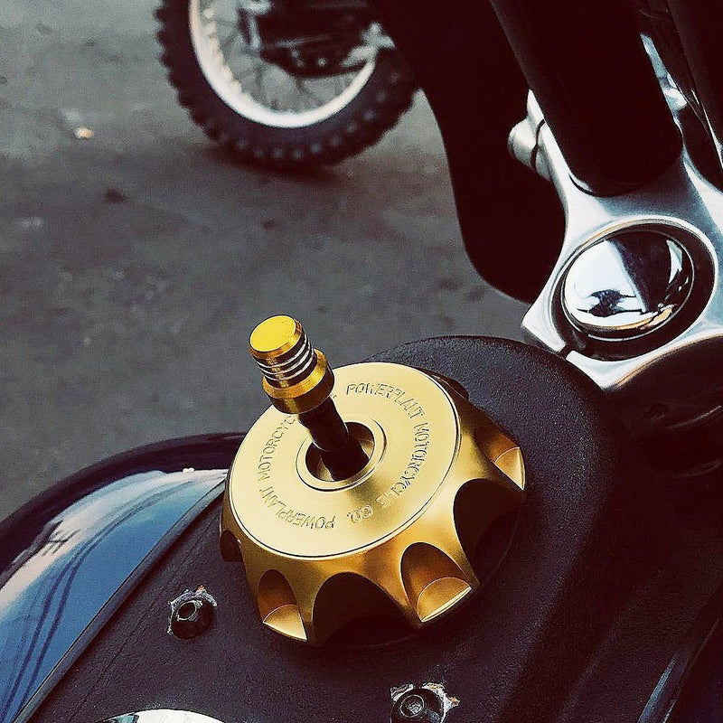P16PRTCAPGLDOS 9NE:027074 1996以降 スポーツスター、ダイナ、ソフテイル、ツーリング ※ガスキャップが露出していない車両は不可 ※ガソリンタンク側にベントノズルが有る車両は不可 POWERPLANT MOTORCYCLE(パワープラントモーターサイクル)