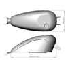 ハーレー XLスポーツスター用 ガソリンタンクです。 台湾のカスタムビルダー、Rough Craftsが製作し、世界コンテストでチャンピオンに輝いたスポーツスターカスタム "Iron Guerilla" に用いたタンクと同形状の、側面に窪みをつけた、スリムでスポーティーなルックスです。 容量は9リッター(約2.4ガロン)。 純正のネジコミ式ガスキャップを使用出来ます。 ラバーマウントフレームのキャブ車用。 ※純正品およびネジ径22mmのナットコネクションタイプの燃料コックを装着出来ます。