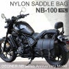 プレーンタイプのナイロン製サドルバッグです。 フラップやベルト部分には合成皮革、ボディには高密度ナイロンを使ったコンビ素材使用。 質感も高く、本革に比べ撥水性も高く、さらにA4サイズも余裕で収納可能な全天候型の万能サイドバッグです。 ボトルホルダー付き。 付属のレインカバーは、携帯可能な上、撥水性も抜群。 水抜き用ホールを備えており、カバー内に水が堪らない工夫がされています。 使い勝手の良いサイズで、大変長く使っていただけるサドルバッグです。 お値段もお手頃で非常に人気の高い商品です。 ・付属品/専用レインカバー・取り付けベルト ・容量/約17L