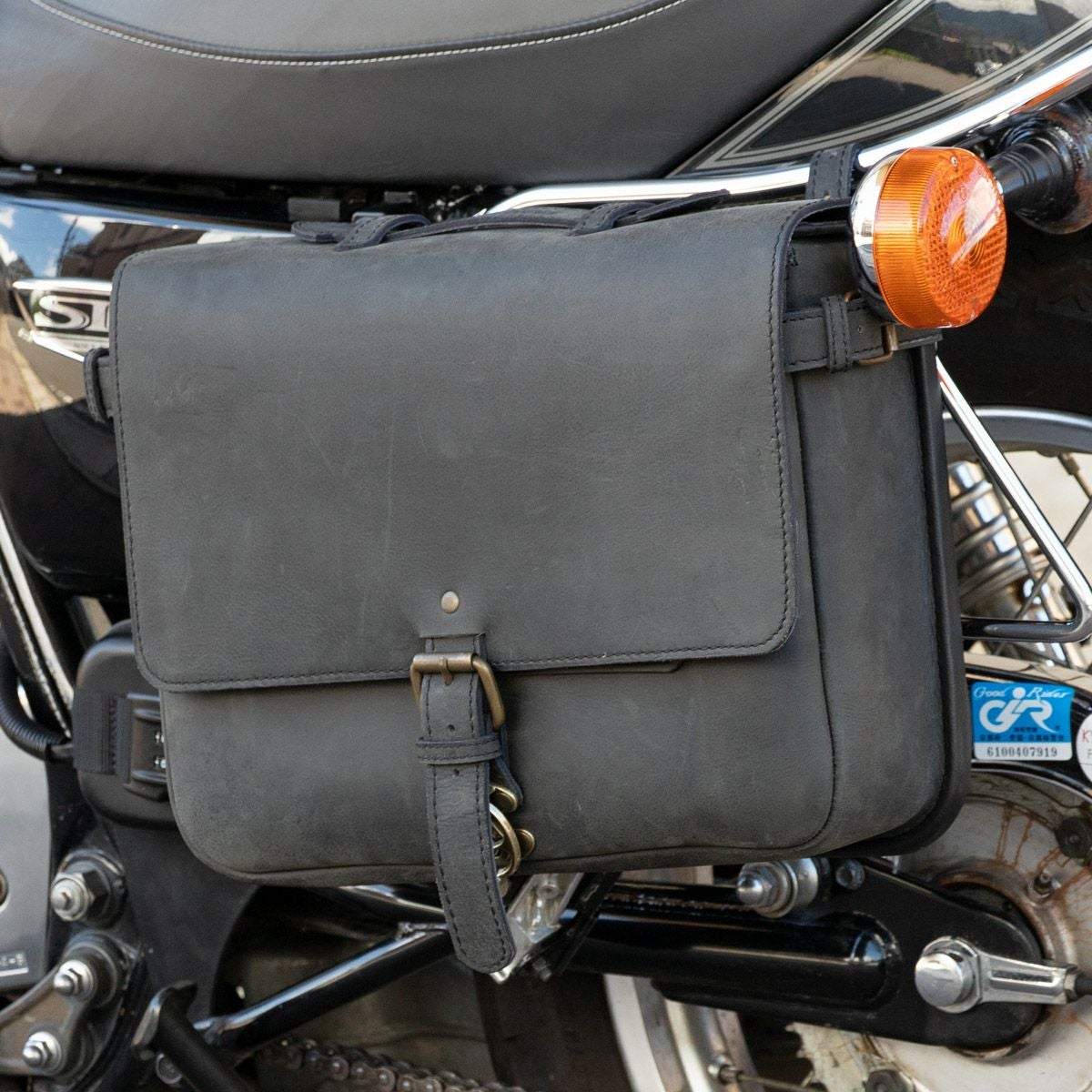 dhカスタム 本革サドルバッグ パッドロック式 ブラック