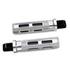 スポーツスター、ダイナ、ソフテイル、Vロッド、ストリート、ツーリング オス型マウントフットペグ装着車用フットペグです。 <特長> ●九十九折りのワインディングロードを疾走するアグレッシブなライディングをイメージしたスイッチバック・デザイン。精緻な滑り止めナールと肉抜きが施されています ●鍛造アルミビレットより精緻な削り出し加工で製作された質感の高い製品 ●アルミシルバー。腐食や色褪せを防ぐクリアアルマイト仕上げ ●左右ペア ※2018以降ソフテイル不可 ※XL1200X/S、XL1200CB、XL1200V、FXCW/C、FXS、FXSB/SE、FXSE ライダー側不可 ※XG750A不可