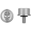 ハーレー用 ハイクオリティ・クイックリリースシートスクリューです。 316L サージカルステンレス製。 装飾用アクセサリーにも使用される耐腐食性の高い素材です。 サイドはナール模様付ですので、工具いらずで簡単に脱着できます。 ステンレスシルバーのゴージャスなルックスです。 センターの装飾プレート付。コントラストカットの星条旗柄スカル入りです。 スレッドは1/4-20サイズ。 化粧箱入りです。 単品販売