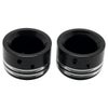 ツーリング、スポーツスター、ダイナ、ソフテイル、ストリート、Vロッド、ストリート用 フロントアクスルカバーです。 アクスルの上に被せるだけで、フロント周りをカスタムルックにドレスアップ出来ます。 ビレットアルミニウム製。 外周部に2本の溝が彫り込まれたデザイン。 ブラックのベースに、溝はシルバーのコントラストカラー。 取付け用のイモネジが付属します。 25mm径アクスル用(一部倒立フォークモデル、スプリンガーモデル、その他一部モデルは不可。適合参照) ※2018以降M8ソフテイルへ装着する場合、別売車種別インストレーションキット(43000090、43000159)が必要です。 左右セット