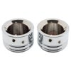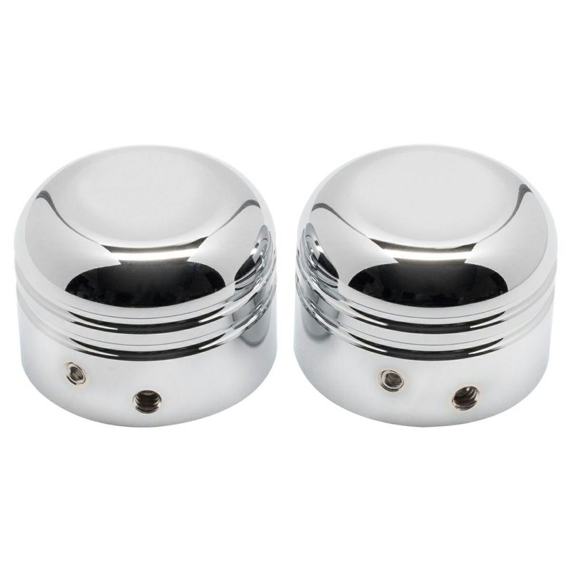ツーリング、スポーツスター、ダイナ、ソフテイル、ストリート、Vロッド、ストリート用 フロントアクスルカバーです。 アクスルの上に被せるだけで、フロント周りをカスタムルックにドレスアップ出来ます。 ビレットアルミニウム製。 外周部に2本の溝が彫り込まれたデザイン。 ゴージャスなクローム仕上げ。 取付け用のイモネジが付属します。 25mm径アクスル用(一部倒立フォークモデル、スプリンガーモデル、その他一部モデルは不可。適合参照) ※2018以降M8ソフテイルへ装着する場合、別売車種別インストレーションキット(43000090、43000159)が必要です。 左右セット