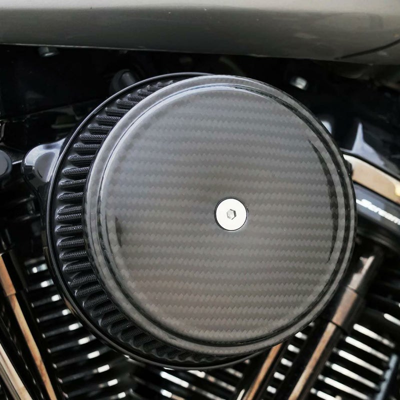 2024以降 ツーリング、2025以降 ソフテイル用 ステージ1 エアクリーナーキットです。 <特長> ●新設計の特許取得バックプレートを採用。バックプレートアウターエッジからスロットルボディまでフラットな面が一切なく、滑らかに繋がるシェイプにより、スムースな空気の流れを促し、最大限の吸入量を実現。エンジンパフォーマンスがアップします ●ハイフローエアフィルターはブラックのオイル塗布済み。精悍なルックスです ●アルミ製ベンチュリ一体型トッププレートにより、空気の流速を更に加速し、充填効率をアップします ●新設計のアルミ製フィルターリングがフィルター付け根部分のボルトやウレタン樹脂をカバーし、クリーンなルックスです ●リアルカーボン製のレーシーなトップカバー付