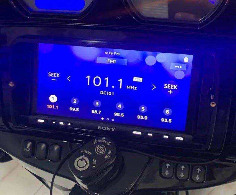 2014~ ツーリングモデル用の社外デッキ(SONY製XAV-AX7000など)は前面パネルは防水でも横から水が入るとシャシー内に浸水する危険性があり、完全防水ではありません。 雨でも安心して使用できるスプラッシュ・カバーです。 2枚構成で、ベースを張り付けておき、必要に応じて手前のスクリーンを取り付けます。
