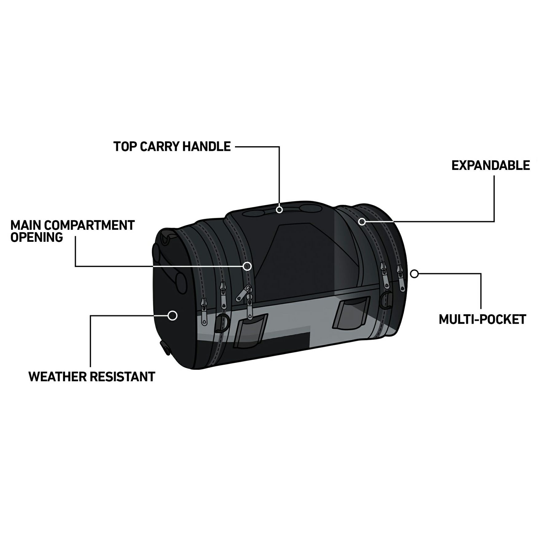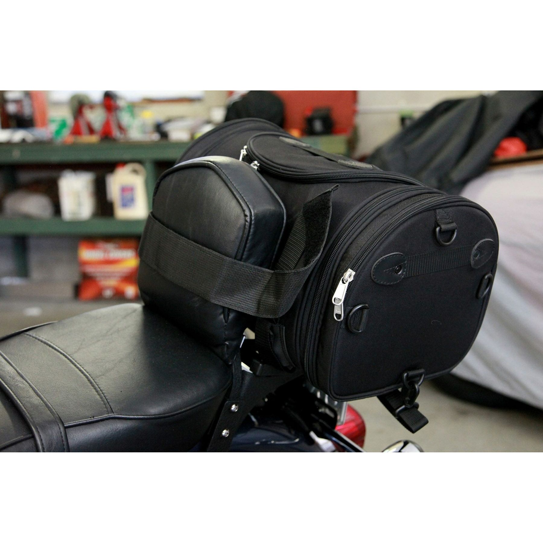 ハーレー用 手軽に使えるスモールサイズのテールバッグです。 シートに固定するか、シーシーバーに固定して使用します。 <特長> ●コーデュラナイロンの丈夫なバッグ ●リッドはダブルプル付きファスナー。パドロックをプルタブに通せば防犯対策も可能です ●両サイドはジッパー付ポケット ●両側のジッパーを開閉して荷物の量に応じて荷室を拡張できます ●リッド内側はジッパー付メッシュポケット仕様 ●リッドには持ち運びに便利なキャリーハンドル付 ●付属のバンジーコードと、バッグに配置されたDリングで様々な取り付け方が可能 ●背面にはシーシーバーへの取り付け用ベルクロストラップ付 ●ショルダーストラップ付属 ●レインカバー付属