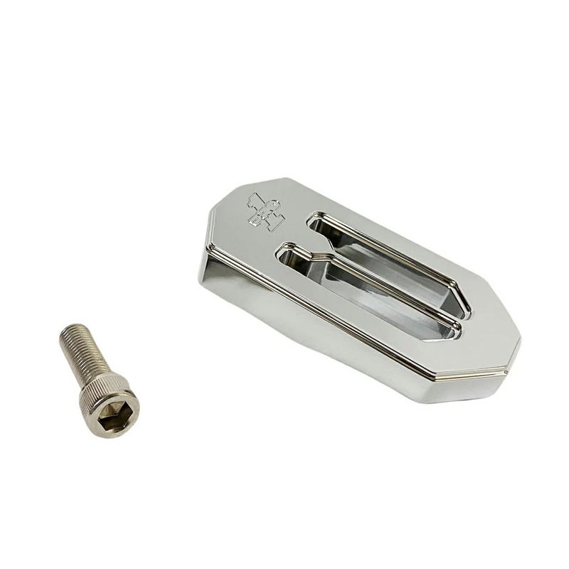 ツーリング、トライク、その他ハーレー用 ブレーキペグです。 特にPRO1(プロワン)のT-REXショートリアブレーキアーム(500773、500772)にデザインマッチします。 ビレットアルミニウム製。CNCマシンによる削り出し加工品です。 クロームフィニッシュ。 5/16-24サイズのマウントボルトが付属します。