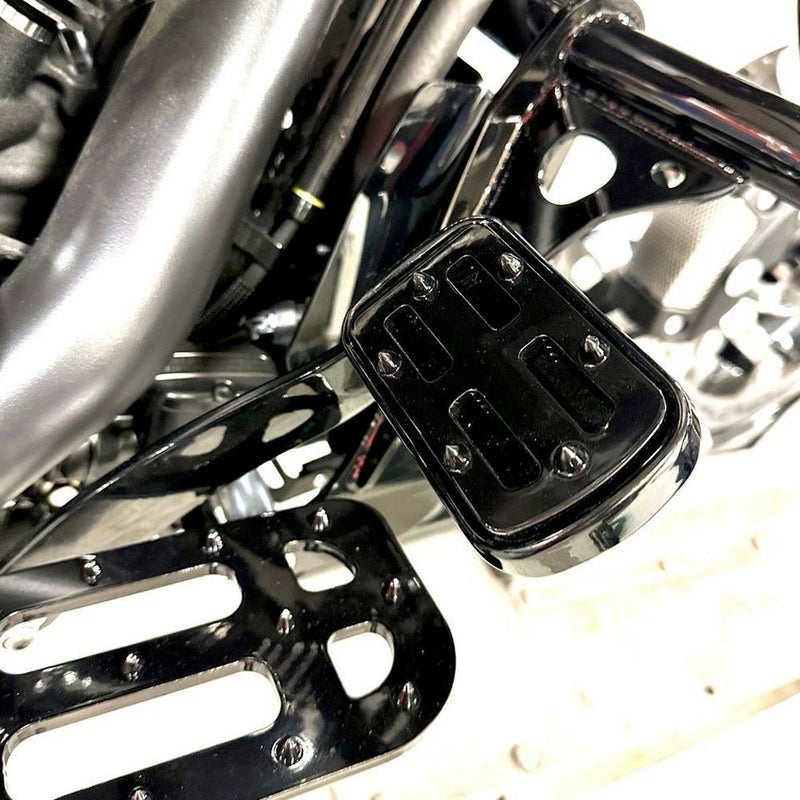精密なレーザーカットを施したブレーキペダルは、過酷な条件下でも耐久性を発揮するように設計されています。 ステンレススチールのトラクションピンにより、足がしっかりと固定されます。 特長 ・1018Mildスチール製フットレスト、表面のトラクションピンはステンレス製 ・パウダーコートによるグロスブラック仕上げ ・メイドイン U.S.A.