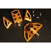 ダイナ、スポーツスター、ソフテイル、FXR、ツーリング(パッセンジャー用)ミニフットボードです。 多くのハーレーに使用されている、オス型フットペグマウント付きです。 このボードは3ピース構成となっており、両サイドのウィングを取り外せばフットペグとして使用することも出来ます。 6061アルミニウム製。 CNCマシンによる削り出し加工品。 アメリカ製にこだわった、しっかりとした頑丈な造りです。 ゴールドのアルマイト仕上げです。 クレビスはステンレススチール製。 左右ペア