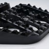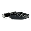 ハーレー ダイナ、スポーツスター、FXソフテイル用 ミニ・フロアボードです。 台形のV2デザイン。 上面は大柄な滑り止めのモト・グリップパターンで、しっかりと踏ん張ることが出来ます。 底面は先端に向けて斜めにカットされた、コーナリング時にバンク角を妨げない形状です。 アルミニウム製。CNCマシンによる削り出し加工品です。 ブラックカラーの腐食に強いアルマイト仕上げ。 オス型マウントが付属します。 取付けに必要なハードウェアが付属します。 ※写真のマウントはM8ライダー用のものです。(参考写真) 左右ペア
