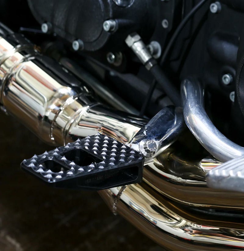 ちょうど良いサイズ感で、抜群のグリップ力です! ※XL1200X等のフォワードコントロール装着車へ装着の場合、1622-0474, 505502 等のステップホルダーをご利用下さい。 2018以降ソフテイルに装着する場合は、ライダー側アダプター(DK-M8-SFT-FPA、又はHD-05385)、パッセンジャー側アダプター(HD-05440)が必要になります。 ※ライダー側、パッセンジャー側で、アダプターが異なります。