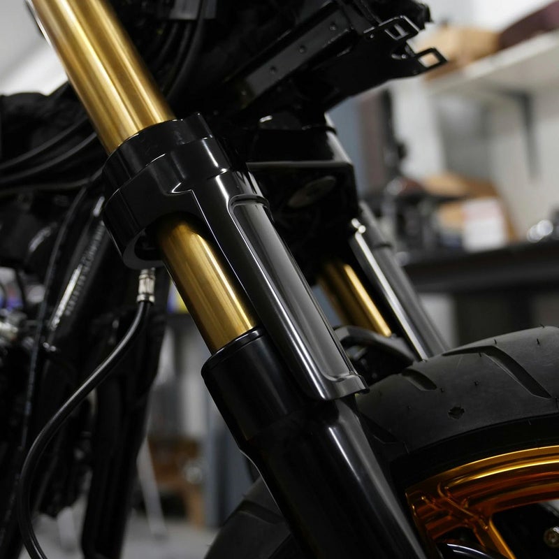 ハーレー ツーリング用 フロントフォーク・インナーチューブです。 カラーはゴールド。 フロント周りをスポーティーなルックスにドレスアップ出来ます。 Arlen Ness(アレンネス)の別売Method バガーフォークブーツ(120-000)と組み合わせると、インナーフォークチューブを際立たせつつ、虫や石跳ねからガードします。 2017年以降のツーリングモデル用サスペンションに適合します。 長さはノーマルプラス2インチの24-7/8インチ(約63.2cm)。車高の高いパフォーマンスバガースタイルになります。 左右セット