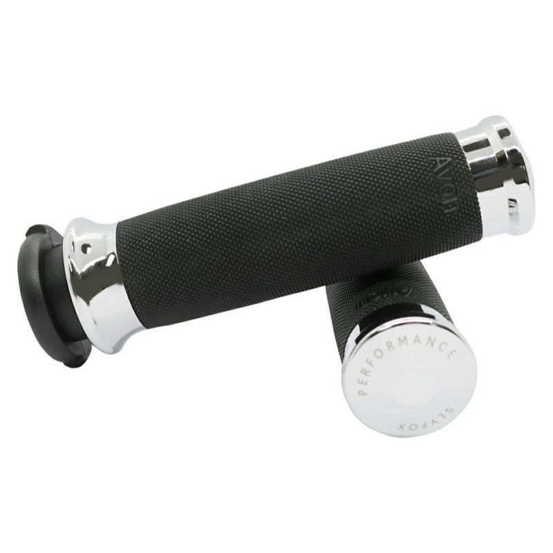 ハーレー スポーツスター、ダイナ、ソフテイル、ツーリング、Vロッド ケーブルスロットル車用ハンドグリップです。 本体はアルミニウム製。 AVON製の滑り止めラバー付です。 エンドキャップにはレーザー刻印されたSLYFOX PERFORMANCEのゴロが入り、レーシーな雰囲気です。 ケーブルスロットル車用 左右ペア