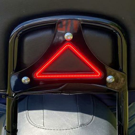 ハーレー純正デタッチャブル・アップライトシーシーバーのバックレスト用、LEDテールランプ付きプレートです。 100個のLEDダイオードが埋め込まれており、ランニングおよびブレーキライトとして機能します。 ドレスアップ効果とともに、他車からの視認性も高まり、安全です。 装着はノーマルのバックレストプレートと交換します。 ※写真のような3点止めのプレートのついたバックレスト用です。 プラグアンドプレイのカプラー付きですので、配線作業も簡単に行えます。 シーシーバーを取り外す際も、ハーネスコネクターを抜くだけで簡単です。 ※コネクタは2010ー2013ツーリング用です。2014以降は配線の切断・配線作業が必要になると思われます。