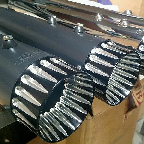 CFR M8ツーリング 4.5インチ スリップオンマフラー ダブルフルーテッド コントラストチップ セラミックブラック