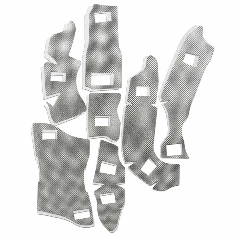 エキゾーストパイプとヒートシールド間に装着して使用するヒートシールドです。 外側に伝わる熱を最大60%カットします。 エキパイは非常に高温になるので、鉄板1枚のヒートシールドでは充分には温度が下がりません。 M8ツーリングモデル用、V&H製パワーデュアル(16871、46871)のヒートシールドの形状にフィットする様カットされています。 低速時や停車時に特に感じるエキパイからの熱を抑える事が出来ます。 車両のスタイルを崩さないよう、外観の変化もなく装着可能です。 アルミニウムとメーカー独自の断熱材(Dura2000)の二重構造で作られ、熱を最大60%カットします。 クローム、ブラック、どちらのヒートシールドにも取り付け可能です。 旧型番:1861-1592