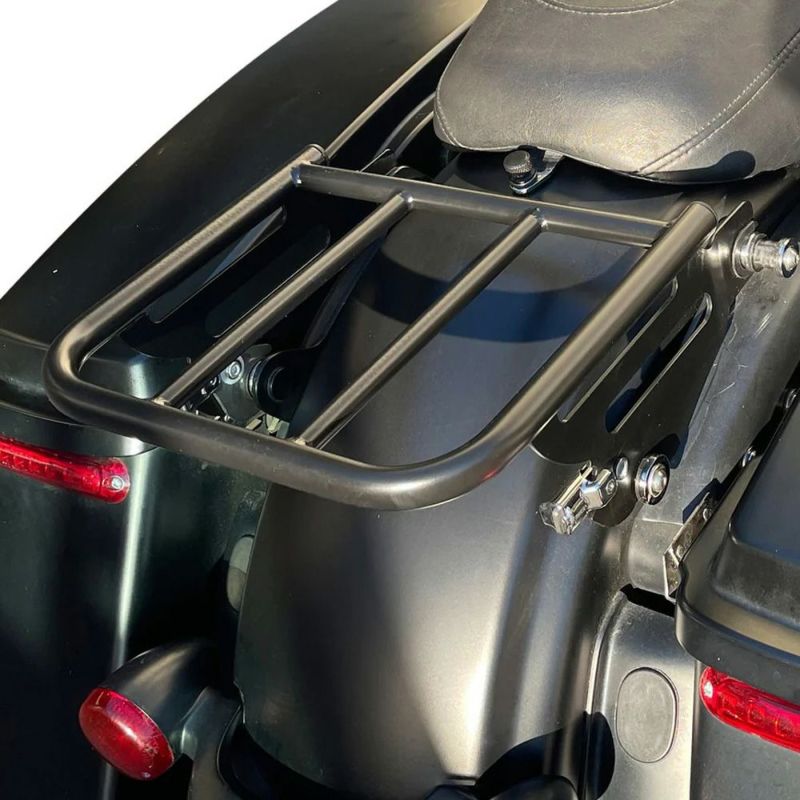 2009以降ツーリング用 デタッチャブルラゲッジラックです。 2UPシート用。 ロープロファイルで、リアフェンダー周りのスタイルを邪魔せず、かつ頑丈で実用性に優れたラックです。 キャリア部分は5/8インチ径(約1.6cm)の頑丈なスチールパイプと、3/8インチ径(約9.5mm)のソリッドロッドの組み合わせ。 サイドプレートは12ゲージ(約2mm)のスチールプレート。 ドッキングポイント用のブッシュが付属します。 ※取付けには車体側の純正(または純正同等)4ポイントドッキングポイントが必要です。