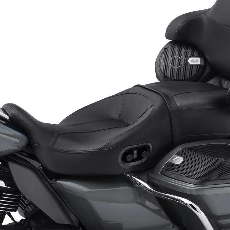 2014以降のハーレー ツーリング、トライグライド用のヒーター機能およびクール機能付きデュアルシートです。 クール機能を使用すると、シート座面温度が約29度から15.5度まで約30分で下がります。(体感温度で36.7度から24.4度まで下がります。)(常温環境下) 寒い時期はヒート機能スイッチを入れれば約7分でシートを温めることが出来、快適です。 シート側面のスイッチでライダー、パッセンジャー各々温度コントロールが可能です。(ただし、ヒート・クールは別々に機能しません) 配線はシートに付属の配線コネクターを、サイドカバー内のアクセサリーコネクターに繋ぐだけです。 シートはハーレー純正シートで最上級の乗り心地のハンモックシート。シートパンの上に2インチ(約5cm)のスリング状のクッション素材を配置し、更に2インチのシートフォームを上乗せしています。大きなギャップや荒れた路面でもライダーに直接衝撃が加わりません。 シート表皮の縫い目は防水シール処理済みですので、雨が降ってもシートフォームにしみ込まず、快適な乗り心地を維持します。 ※2014~2016 ツーリング、トライグライドは別売ハーネス(69200722)が必要です。 ※2017~2023 ツーリング、トライグライドは別売ハーネス(69201599A)が必要です。 ※トライグライドは別売ブラケット(52100063)が必要です。 ※リアフェンダートリムストリップ装着車は取り外す必要があります。
