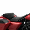 2014以降のハーレー ツーリング用 ドラッグスタイル デュアルシートです。 このシートはピリオンとライダーの段差が高く、ドラッグスタートのような急加速でもライダーの腰をしっかりとサポートします。 また、ピリオンシートの位置を前後2インチ(約5cm)調整出来るため、ライダーの乗り方や体格に合わせたポジションを取ることが出来ます。 シートフォーム座面の凹凸により、快適性を損なうことなく、ホールド性を高めています。 シートパンは軽量かつ堅牢なアルミ二ウム製。ハードなライディングでもシートを通じてライダーが車体の状況を感じ取れます。 シートパンの前後が外側に露出しており、デザインアクセントになっています。 ※パッセンジャーグラブレールおよび、ツアーパックラックとの併用不可。 展示処分品 シートスクリュー(10500093)は付属しません。 写真に写らないような細かい傷があります。