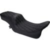2008以降 ツーリング用 ツーアップシートです。 <特長> ●スリムなシェイプと高いライダーバックサポートを持つ、パフォーマンスバガーイメージのシート ●座面にはアグレッシブなダブルダイアモンドステッチ入り ●高密度ポリウレタン製のシートフォームと、厚さ3/16インチ(約5mm)の頑丈なABS樹脂製シートベースが体重を適度に分散し、快適な座り心地です ●ライダー側にDrag Specialties(ドラッグスペシャリティーズ)のEZ Glide II バックレスト各種(別売)を装着出来ます ●シート先端は幅を絞り込み、停車時にライダーが足を下しやすくしています ●シートベース底面はカーペット素材とラバー製バンパーで車体に傷がつきにくいよう配慮されています