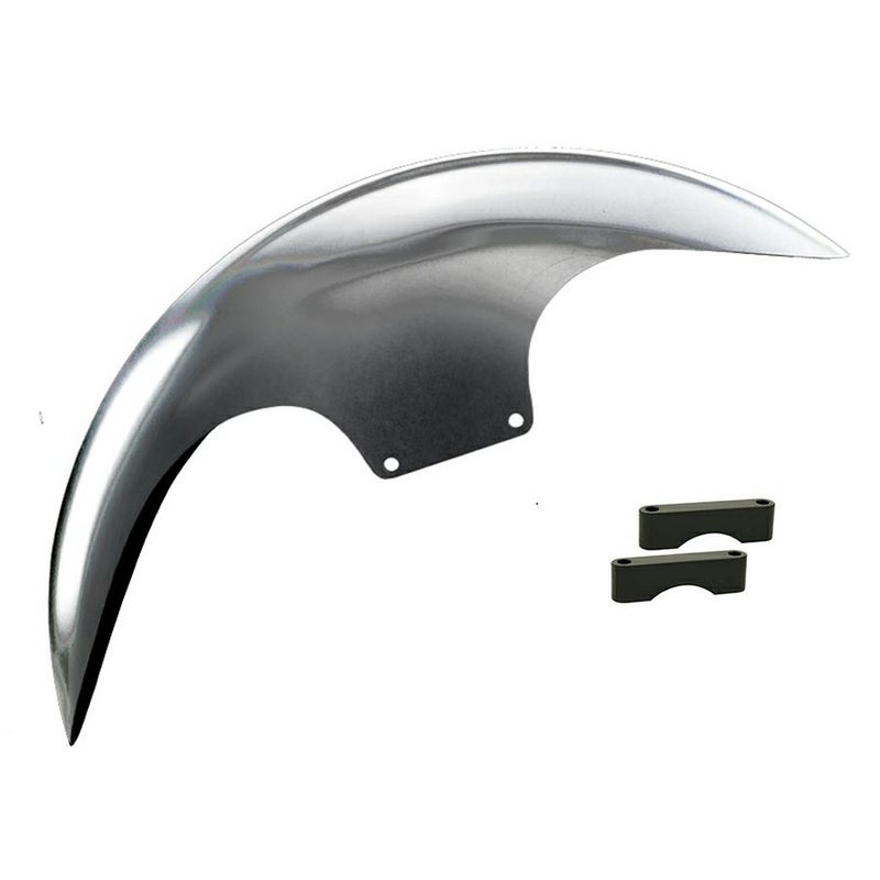 ハーレー ツーリング、トライク用 カスタムフロントフェンダーキットです。 フェンダーはミドルレングスでやや深さのある、CAFEデザイン。 前後のカットがシャープな、適度にスポーティーなルックスです。 16インチ~19インチのノーマルサイズホイール/タイヤにフィットします。 14ゲージ(約1.6mm)厚のスチール製。プレスと精緻なレーザー加工で製作されています。 アルミ製ブラックパウダーコート仕上げのスペーサーが付属します。 その他取り付けに必要なハードウェアが付属します。