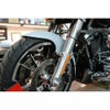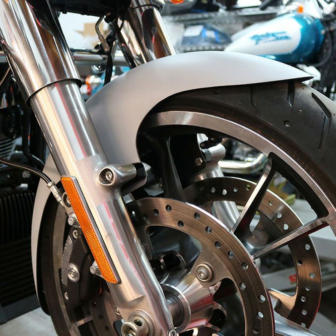 ハーレー ツーリング用 カスタムフロントフェンダーキットです。 フェンダーはミドルレングスでやや深さのある、CAFEデザイン。 前後のカットがシャープな、適度にスポーティーなルックスです。 16インチ~19インチのノーマルサイズホイール/タイヤにフィットします。 軽量なグラスファイバーコンポジット製。 アルミ製ブラックパウダーコート塗装仕上げのスペーサーが付属します。 その他取り付けに必要なハードウェアが付属します。