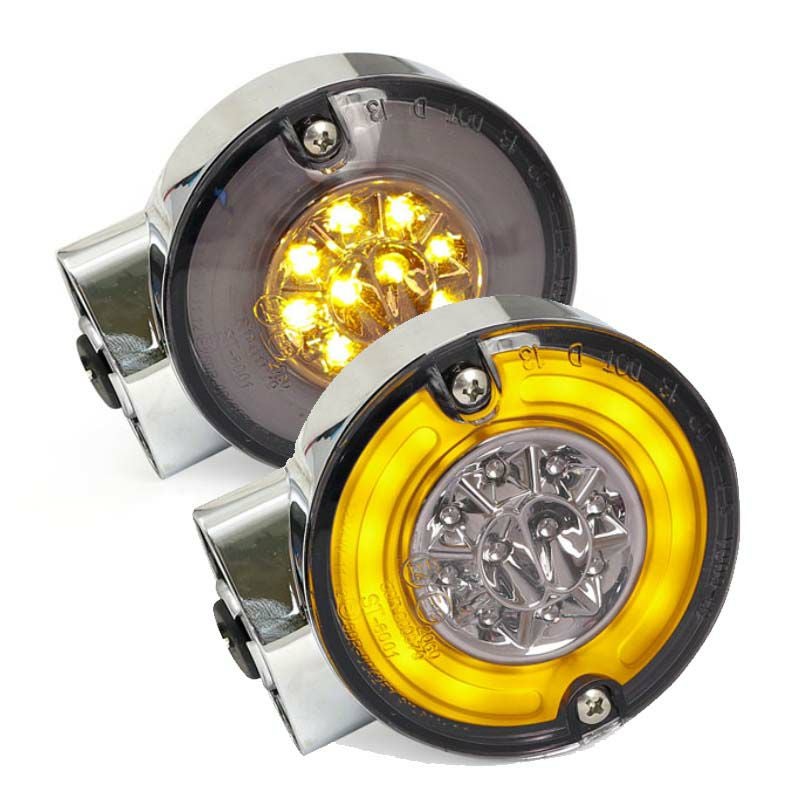 MCS ハーレー用リング付LEDフラットターンシグナル(フロント用) クローム