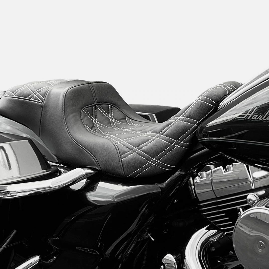 商品番号 ERSEAT09-LU-WHDD メーカー型番:ERSEAT09-LevUp-WhiteDD 2024 FLHTK、FLTRK、FLHRXS 2008~2023 ツーリング CMC(カスタムモータースポーツ)