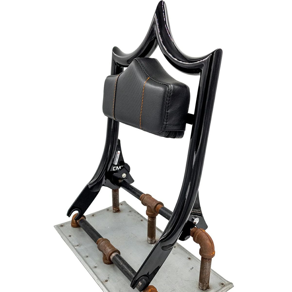 エル・レイ DOS EQUIS デタッチャブル バックレスト 16インチ グロスブラック カーボン/オレンジステッチ CMC
