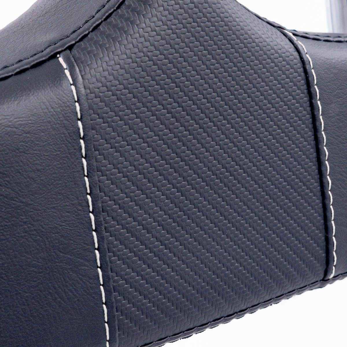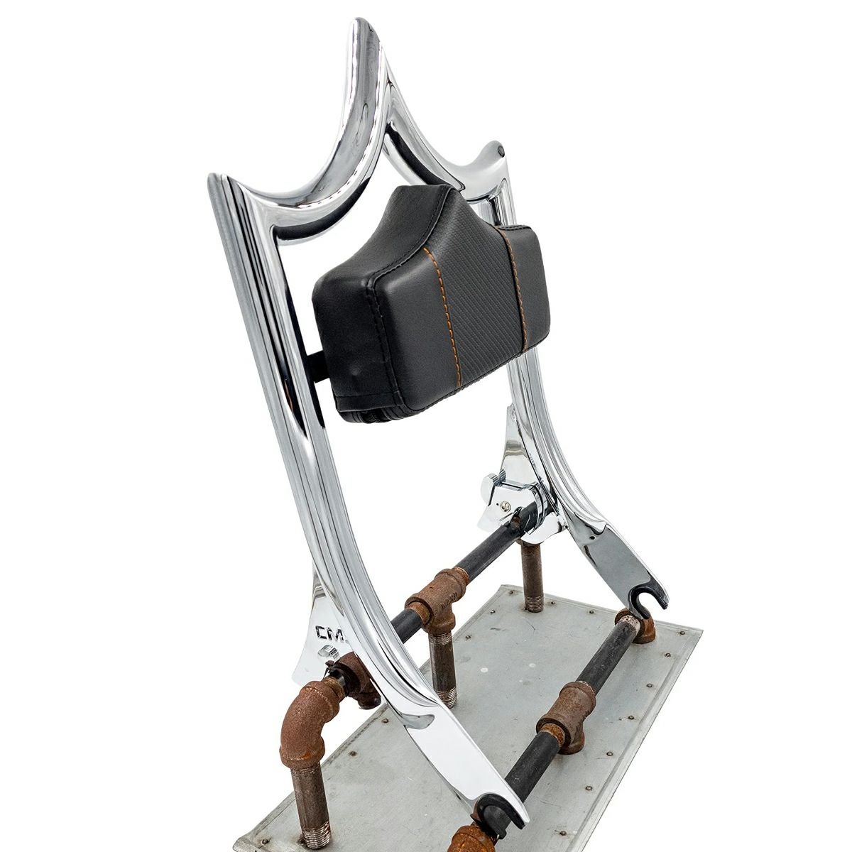 エル・レイ DOS EQUIS デタッチャブル バックレスト 16インチ クローム カーボン/ホワイトステッチ CMC