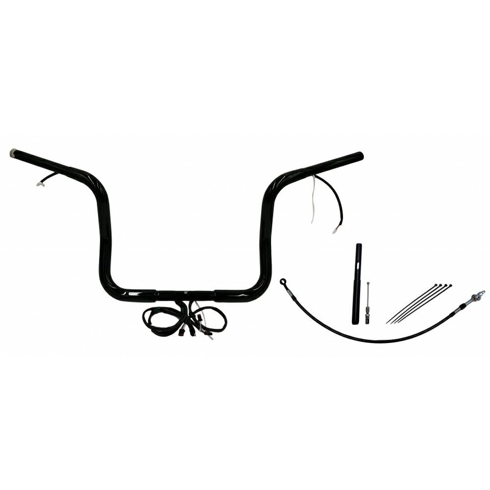 Fat Baggers 1.25インチ ラウンドトップハンドルバー プラグアンドプレイキット 12インチ グロスブラック